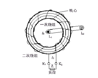 穿心式电流互感器其本身结构不设一次绕组,载流(负荷电流)导线由L1至L 2穿过由硅钢片擀卷制成的圆形(或其他形状)铁心起一次绕组作用。二次绕组直接均匀地缠绕在圆形铁心上,与仪表、继电器、变送器等电流线圈的二次负荷串联形成闭合回路。